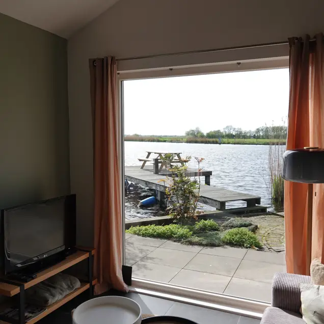 Het huis is geheel gelijkvloers en heeft twee slaapkamers. Op een slaapkamer staan twee eenpersoonsbedden, de andere heeft een tweepersoonsbed. Er is een apart toilet en een badkamer met een ruime douche. De keuken is compleet ingericht met koffieapparaat, vaatwasser, wasmachine, koelkast, vriezer en combimagnetron. Vanaf de woonkamer heb je aan twee kanten uitzicht op het water.